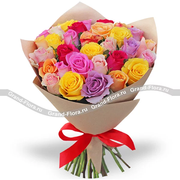 Роза микс Российская - 31 штука 40-50 см, упаковка, лента.